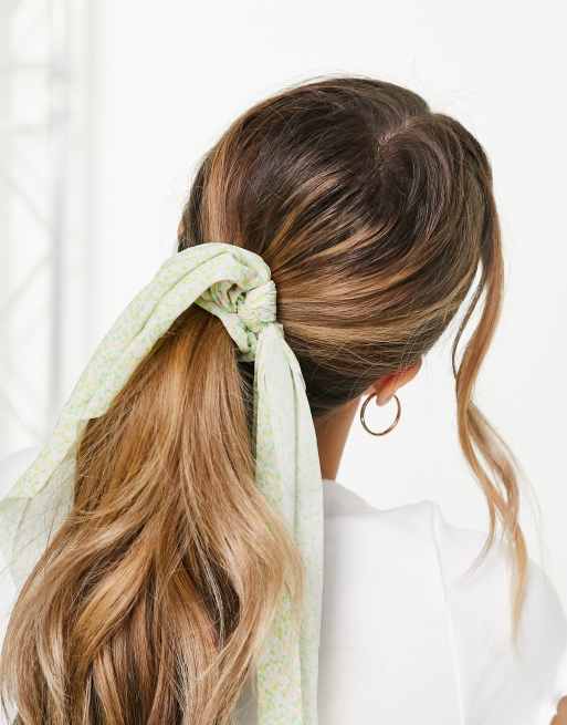 Pieces Haargummi mit Schleife und Bl mchenmuster in Gr n ASOS Very well made.