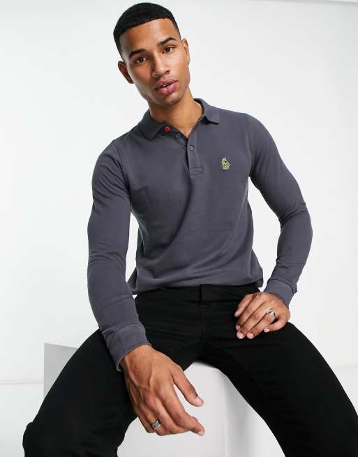 Luke Sport Longmead tipped collar long sleeve polo shirt in dark Very well made.