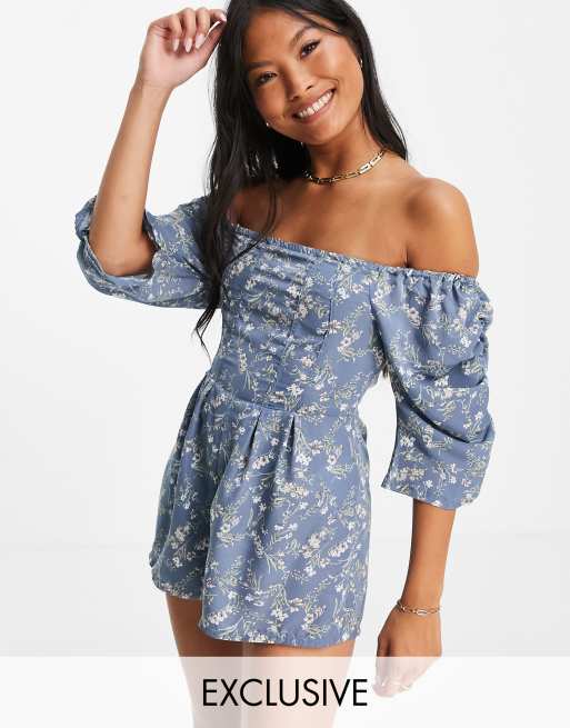 Missguided Petite ditsy floral playsuit in blue ASOS Very well made.